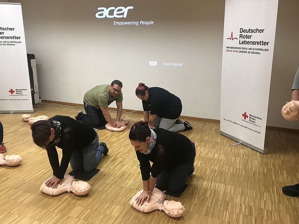 Im Anschluß an den sehr interessanten Vortrag hatten allle 28 Teilnehmer die Möglichkeit, nach der Einweisung durch Ausbildungskräfte, die Herz-Kreizlauf-Reanimation mit und ohne Unterstützung durch den Defibrillator zu üben. Nach dem Beantworten von offenen Fragen und ein bisschen Small-Talk endete ein interessanter Abend.